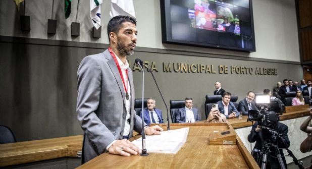 Suárez fue condecorado con la medalla del mérito Farroupilha, el máximo honor entregado por el órgano legislativo de Rio Grande do Sul, en una ceremonia celebrada en Porto Alegre, en el que gran parte del público le pidió que se quedara en Grêmio.