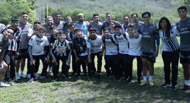 Monterrey.- Los jóvenes de la Selección de Nuevo León, que ganó el Desafío Mundial de Madrid 2023, visitaron las instalaciones de El Barrial, donde convivieron con los jugadores de Rayados.