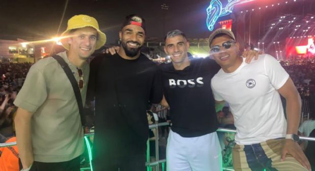 Los jugadores parecen habérsela pasado muy bien e incluso atendieron a algunos aficionados que se toparon durante su estancia en el evento, que vivió ese domingo su último día de conciertos.
