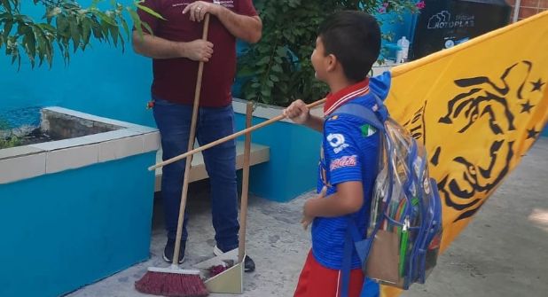 A través de un video se puede observar al joven estudiante de primaria, Patricio Zavala, cuando entra a la institución educativa ondeando la bandera y presumiendo el pase de su equipo al partido por el título de la Liga MX.