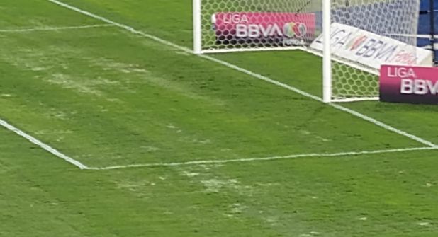 Durante el partido entre Rayadas y León de este sábado, se pudo constatar que la cancha del 'Gigante de Acero' no se encuentra en las mejores condiciones.