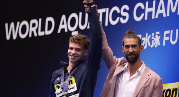 Y lo hizo porque pulverizó en 1.34 segundos un récord que databa de 2008, pero sobre todo porque el poseedor del mismo era un mito de la natación: Michael Phelps. Marchand nadó 15 años después en 4:02.50, Phelps lo había hecho en 4:03.84.