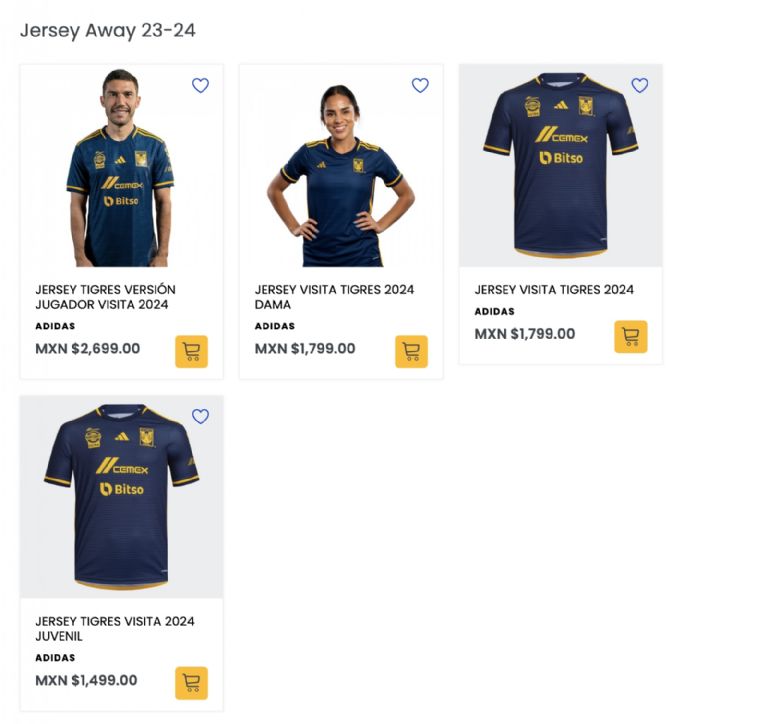 La Tigre Tienda ya cuenta con los jerseys disponibles para la venta en línea. La versión de jugador alcanza los 2 mil 699 pesos; el corte de aficionado cuesta mil 799 y la juvenil tiene un costo de mil 499 pesos.