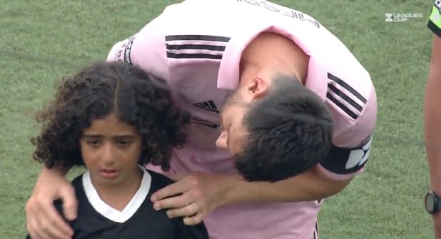 “¡Gran gesto del GOAT! Un niño llora y Messi lo consuela antes del arranque del segundo partido del Inter MiamiCF de la Leagues Cup”, tuitieó la cuenta oficial en español de la MLS.