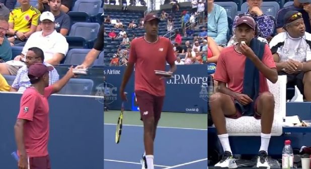 Tras probar uno de los rollos tomó un poco de agua, se secó el sudor con su toalla y saltó a la pista para continuar con el partido, enfocado en concretar la victoria y con energías recargadas por la comida exprés.