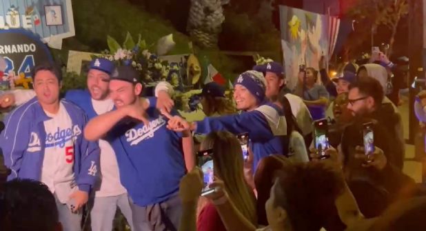 Los aficionados bailaron, gritaron y cantaron el corrido dedicado a Valenzuela frente al imponente letrero del Dodger Stadium, que los mismos aficionados al ´Toro´ se encargaron de convertirlo en una gran ofrenda con ramos de flores, gorras del equipo y bandera de México.