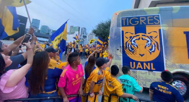 Monterrey.- La fiesta del Clásico Regio 135 arrancó desde temprano a las afueras del hotel de concentración de Tigres, donde su afición se dio cita para despedirlos rumbo al Estadio BBVA.