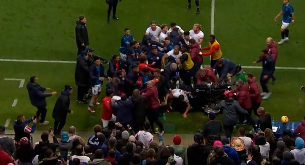 En medio del tumulto, un camarógrafo fue golpeado accidentalmente y varios futbolistas terminaron en el césped, como Sebastian Berhalter, quien cayó tras un empujón. Miles Robinson incluso intentó encarar a miembros del cuerpo técnico rival antes de ser contenido.