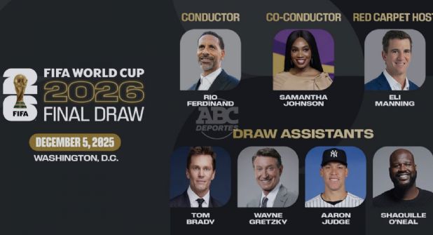 La FIFA anunció un elenco sin precedentes para conducir el evento. Rio Ferdinand, símbolo de la selección inglesa y uno de los defensores más destacados de su generación, será el responsable de dirigir el sorteo. Lo acompañará la premiada presentadora Samantha Johnson, figura con más de dos décadas de trayectoria en plataformas globales.