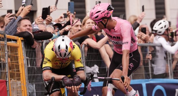 Le siguieron, con el mismo registro, el belga Wout van Aert y el líder mexicano Isaac del Toro a 2 segundos, siempre atento a la hora de sumar tiempo. En esta ocasión le cayeron 4 segundos de bonificación a la maglia rosa endosó además 2 segundos al resto de favoritos. Novena plaza en la etapa para el venezolano Orluis Aular (Movistar) y décima para el colombiano Egan Bernal (Ineos).
