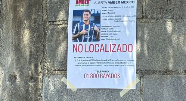 En el cartel, que fue pegado con cinta en una de las paredes del complejo, se muestra una fotografía de Ocampos con la camiseta albiazul, acompañada de datos como su fecha de nacimiento, nacionalidad, estatura y color de cabello. En el apartado de “Resumen de hechos” se lee que “fue visto por última vez” el 15 de diciembre de 2024, en el partido de ida de la Final del Futbol Mexicano entre Monterrey y América, “siendo lo último que se supo de su paradero”. La leyenda “No localizado” aparece en letras rojas, junto a un número telefónico ficticio “01 800 Rayados”.