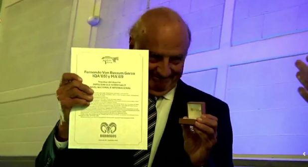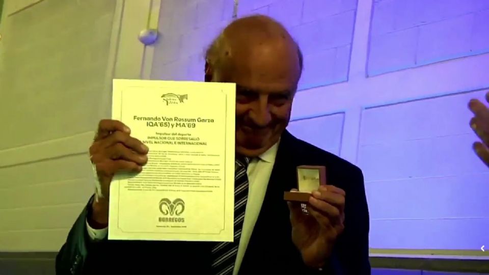 El momento más emotivo de la noche fue la entronización de Fernando von Rossum, histórico narrador y voz de los Borregos Salvajes en los campeonatos de 1971 y 1972, además de referente de la narración del futbol americano en México.