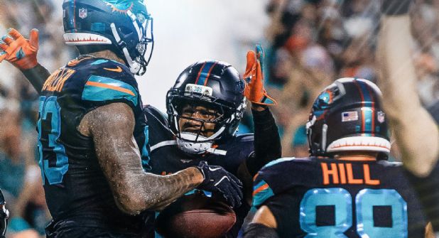 El 'quarterback' Tua Tagovailoa lanzó para 177 yardas (17 de 25 en pases), con dos pases de anotación, ambos para Darren Waller.