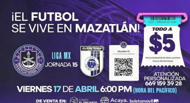 Mazatlán.- El Mazatlán FC lanzó una promoción inusual en la recta final del Clausura 2026, al anunciar que los boletos para su partido ante Querétaro tendrán un costo de cinco pesos.