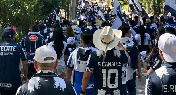 Aficionados del Monterrey inundaron las principales vialidades de la ciudad en la sede de Los Ángeles, pintando todo el camino hacia el estadio con los tradicionales azul y blanco, con sonido inconfundible de sus canticos que semana a semana se escuchan en el “Gigante de Acero".