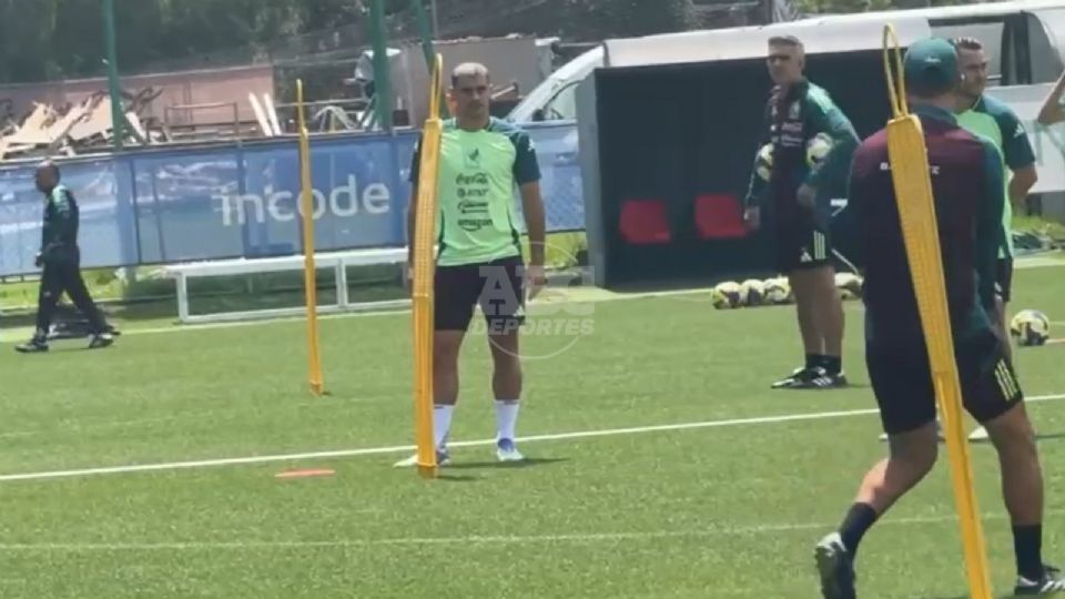 Durante la sesión de entrenamiento de este lunes en el CAR, se pudo observar a todos los seleccionados de Liga MX haciendo trabajos físicos y ejercicios con balón, bajo la supervisión de Javier Aguirre y su auxiliar, Rafael Márquez.