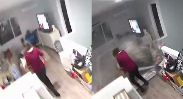 El impactante suceso quedó grabado por una cámara de seguridad instalada en la vivienda, donde las distintas imágenes ya le dieron la vuelta al mundo.