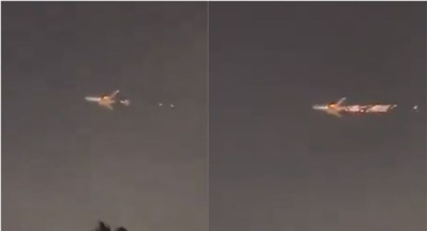 A través de redes sociales se difundió un video en el que se aprecia a la presunta aeronave en el cielo con fuego en uno de sus motores.