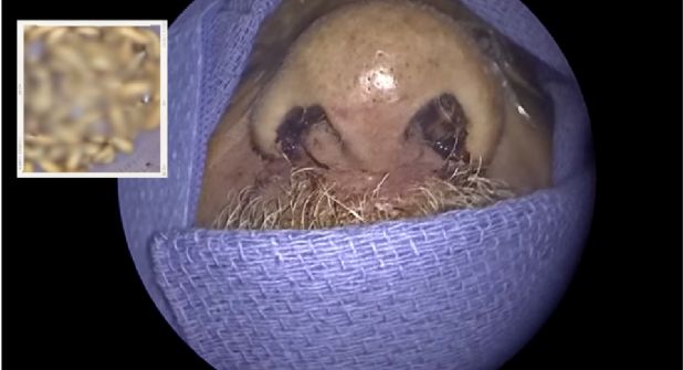 De acuerdo a los expertos, esta rara afección se llama miasis nasal, que es la infestación de larvas de mosca.