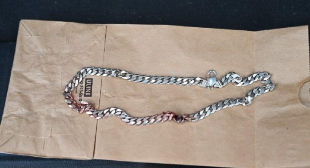 La cadena de aproximadamente media pulgada detuvo una bala calibre .22 en seco, dejando a la víctima del tiroteo solo con una herida punzante menor.