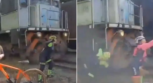Personas que se encontraban cerca lograron registrar lo sucedido con su cámara celular, y el video muestra cómo esta ciclista se acerca a los rieles, ignora el silbato del tren, le da la espalda para la toma de la foto, pero termina golpeada por la estructura de la máquina, que continuó su paso.