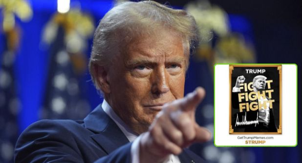 El activo tiene como imagen a Trump con el puño alzado, el mismo gesto que hizo el pasado julio justo después de haber sido disparado en la oreja durante un mitin electoral en Butler (Pensilvania). Cuando se levantó del suelo, levantó el brazo y gritó "Fight" (lucha), la misma palabra que aparece ahora impresa por triplicado.