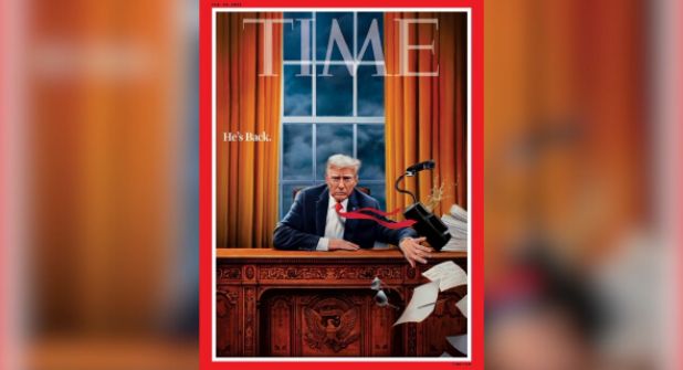 Estados Unidos.- A un día de que Donald Trump retome la presidencia de Estados Unidos, la revista Time mostró su nueva portada, totalmente ocupada por el magnate neoyorkino, con la frase “He´s Back” (Él está de regreso).