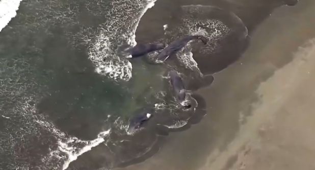 Un hombre que salió a comprobar la altura de las olas antes de ir a surfear vio a las cuatro ballenas en la orilla y grabó un vídeo en el que se pueden ver varias ballenas moviendo las aletas, según recoge la cadena japonesa NHK.