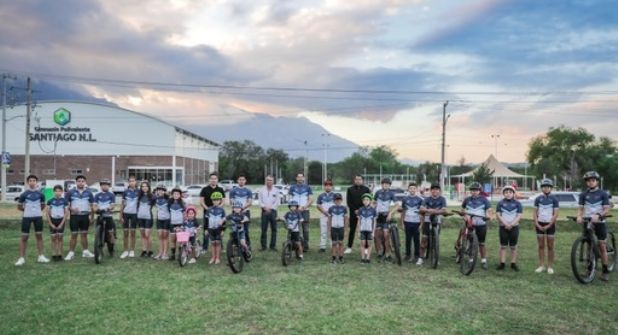 Monterrey.- El alcalde de Santiago, David de la Peña, entregó uniformes a los estudiantes de la Escuela Municipal de Ciclismo, donde participan niños, jóvenes y adultos que quieren aprender a andar en bicicleta, hacer un correcto uso de este vehículo y alcanzar niveles de competitividad.