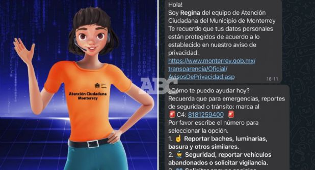 Monterrey.- Los ciudadanos que estén interesados en realizar reportes relacionados a los servicios públicos, seguridad y vialidad, o en su caso solicitar apoyos sociales, pueden hacerlo a través del chat bot “Regina”, plataforma que fue estrenada esta semana por el Municipio de Monterrey.