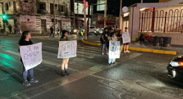 Fue al filo de las 20:00 horas que el contingente de manifestantes realizó este bloque, lo cual trastocó la vialidad de Félix U. Gómez en dirección de norte a sur.