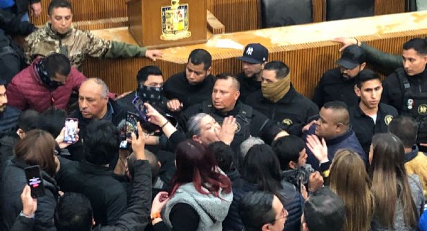 Tras un altercado marcado por gritos, empujones, forcejeos, pancartas e incluso bombas de humo, la Fuerza Civil accedió al congreso.