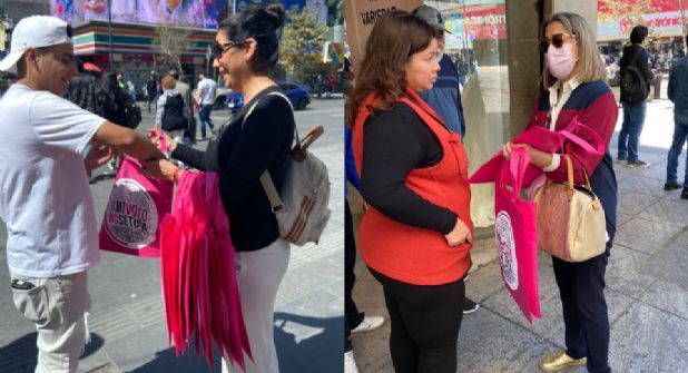 Como parte de la convocatoria libre, durante este domingo, los activistas entregaron bolsas con folletos informativos en los cruces de Morelos con Juárez y Zaragoza, para invitar a la ciudadanía a sumarse a la manifestación que, señalan, es una causa y un compromiso con México, en el cual, todos caben.