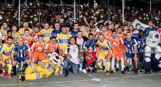 Monterrey.- El Clásico Regio 129 está a la vuelta de la esquina, y por este motivo, el alcalde de Santa Catarina, Jesús Nava Rivera, promovió el partido amistoso ‘Libre de Violencia’ en el que participaron exjugadores de Tigres y Rayados, así como integrantes de la barra de los ‘Libres y Lokos’ y la ‘Adicción’.