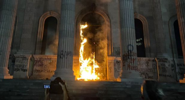 La escalada se dio al arribar al palacio, donde además de quemar, se hicieron pintas, rompieron ventanas de vidrio y lanzaron consignas en contra de autoridades.