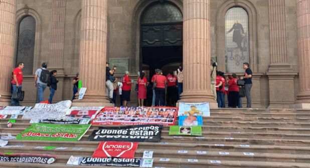 Monterrey.- Alrededor de 100 madres buscadoras realizaron una manifestación esta mañana de miércoles 31 de mayo en las escalinatas del Palacio de Gobierno.