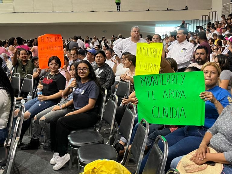 A su llegada, fue recibida con gritos como “Claudia presidenta” y “es un honor estar contigo hoy”, además de frases en lonas y cartulinas como “Claudia eres mi crush”, “Monterrey te Apoya" y “te queremos”.