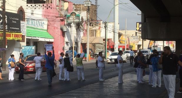 Monterrey.- Un grupo de trabajadores de la clínica 25 del Instituto Mexicano del Seguro Social (IMSS) realizaron un bloqueo en la avenida Lincoln, cerca de su cruce con Gonzalitos como forma de protesta.