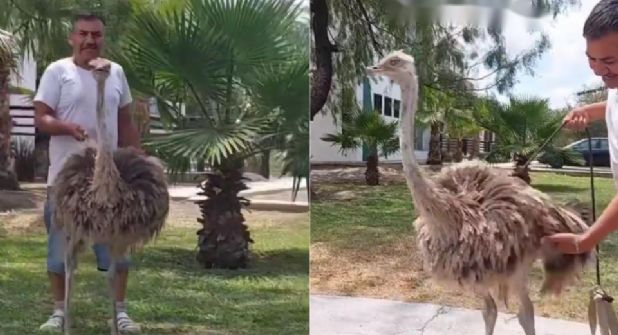 Apodaca. - En redes sociales se viralizó este jueves un video, en el que apare un señor paseando hasta con correa una avestruz que tiene de mascota por las calles del municipio de Apodaca.