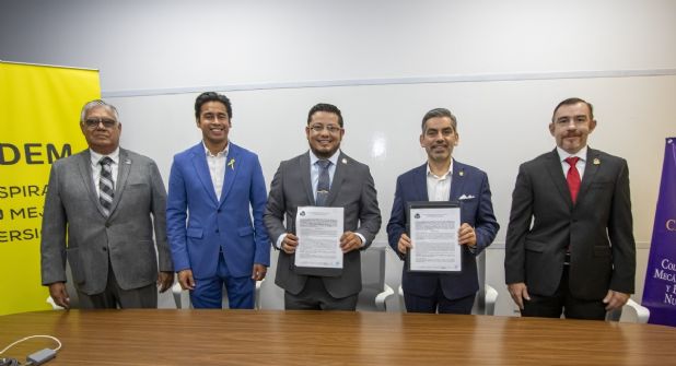 Monterrey.- Para fortalecer la colaboración y preparar a los próximos ingenieros biomédicos de Nuevo León, se firmó por primera vez un convenio entre el Colegio de Ingenieros Mecánicos, Electricistas y Electrónicos de Nuevo León, A.C. (CIMENL) y la Universidad de Monterrey (UDEM).