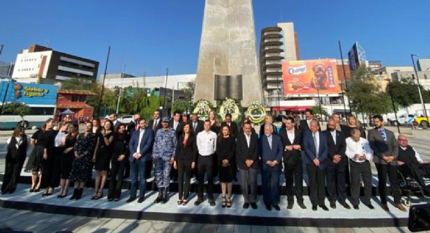 Monterrey. - Al filo de las 08:00 horas, integrantes del cabildo de Monterrey conmemoraron el 427 aniversario de la fundación de la ciudad con una guardia de honor y un minuto de silencio en el obelisco de la calle Juan Ignacio Ramón del centro de la ciudad.