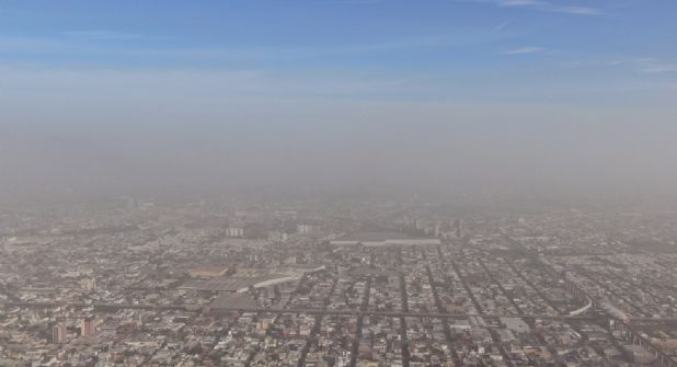 El Sistema de Monitoreo Ambiental (SIMA), en la estación de monitoreo ubicada en esa ciudad, reportó esta mañana un indicador de 597 microgramos por metro cúbico de partículas PM10 con un índice de “Aire y Salud: Extremadamente mala”.