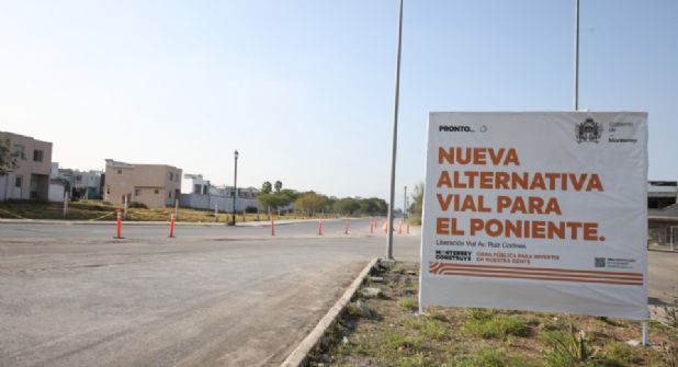 Monterrey.- La avenida Ruiz Cortines fue liberada para el tránsito vehicular uniendo las colonias Plutarco Elías Calles y Cumbres Diamante, con lo cual se eliminó la antigua restricción provocada por una barda en la calle Crédito Ejidal.