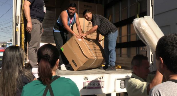 Monterrey.- Este martes llegó a Nuevo León la primera remesa de material electoral para las elecciones locales y federales del próximo 2 de junio, donde se incluyen urnas, mamparas, marcadores de credenciales, actas del electorado en tránsito, entre otros.