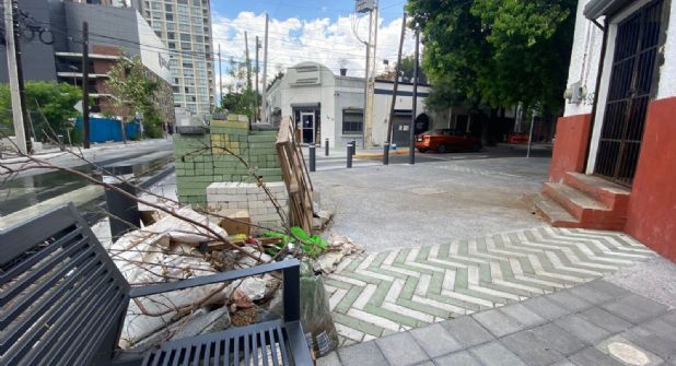 Ese es el caso de la calle Modesto Arreola, desde su cruce con Héroes del 47, hasta Cuauhtémoc. Al inicio del recorrido, se encuentran apilados sacos de escombro y adoquines que no han sido utilizados.