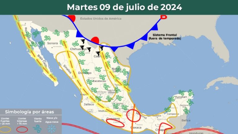 También participan la inestabilidad en niveles altos de la atmósfera; la vaguada monzónica que se mantendrá cercana a las costas del Pacífico Sur; un canal de baja presión que se extenderá sobre el norte, occidente y centro de la República; y la entrada de humedad proveniente del océano Pacífico, golfo de México y mar Caribe.
