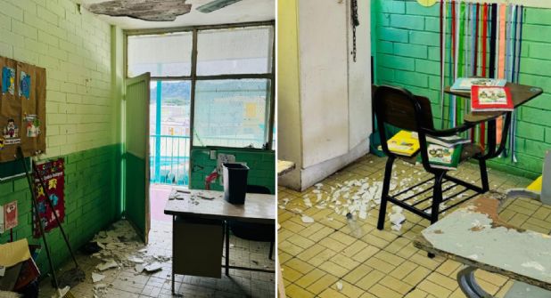 “Desde aquí hago un llamado para que las autoridades tomen acciones de inmediato para evitar una tragedia y vaya a caerse este techo sobre los alumnos”, exhortó.