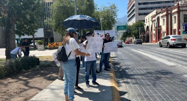 Monterrey.- Manifestantes del Poder Judicial, se reunieron en la plaza Zaragoza de Monterrey para repartir volantes y dar a conocer que están en contra de la reforma al Poder Judicial propuesta por el Gobierno Federal.
