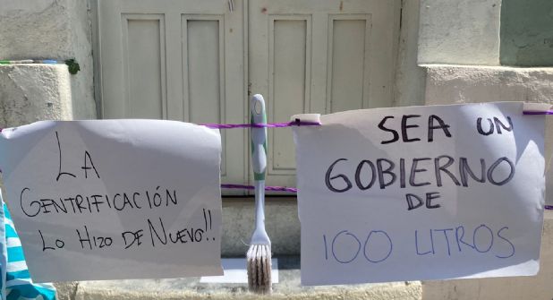 Durante la mañana de este sábado 03 de agosto, un grupo de aproximadamente 20 personas colocaron un tendedero con ropa y pancartas que decían "la certificación lo hizo de nuevo" en protesta a la fuga de agua que mencionan lleva más de dos meses.