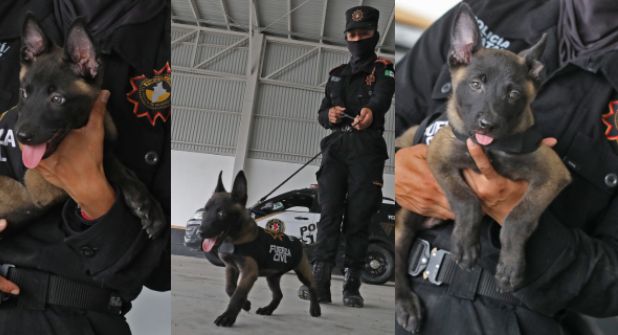 Monterrey.- Harry, Jack y Mozart son los cachorros Pastor Belga Malinois de mes y medio de nacidos que forman parte de la nueva camada de reclutas adiestrados para incorporarlos al Escuadrón Binomio Canino K9 de la institución policial de Fuerza Civil.